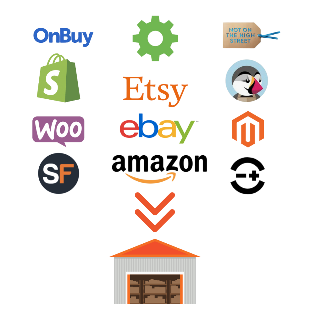 Our clients can link all their sales channels directly to our stock control and order processing system. This eliminates the need to log in to platforms like Amazon, eBay, Not on the High Street, Etsy, or your website to manually retrieve orders—everything is automatically sent to us for seamless processing. We can pull down order every 15 – 30 minutes allowing us to process your order efficiently.